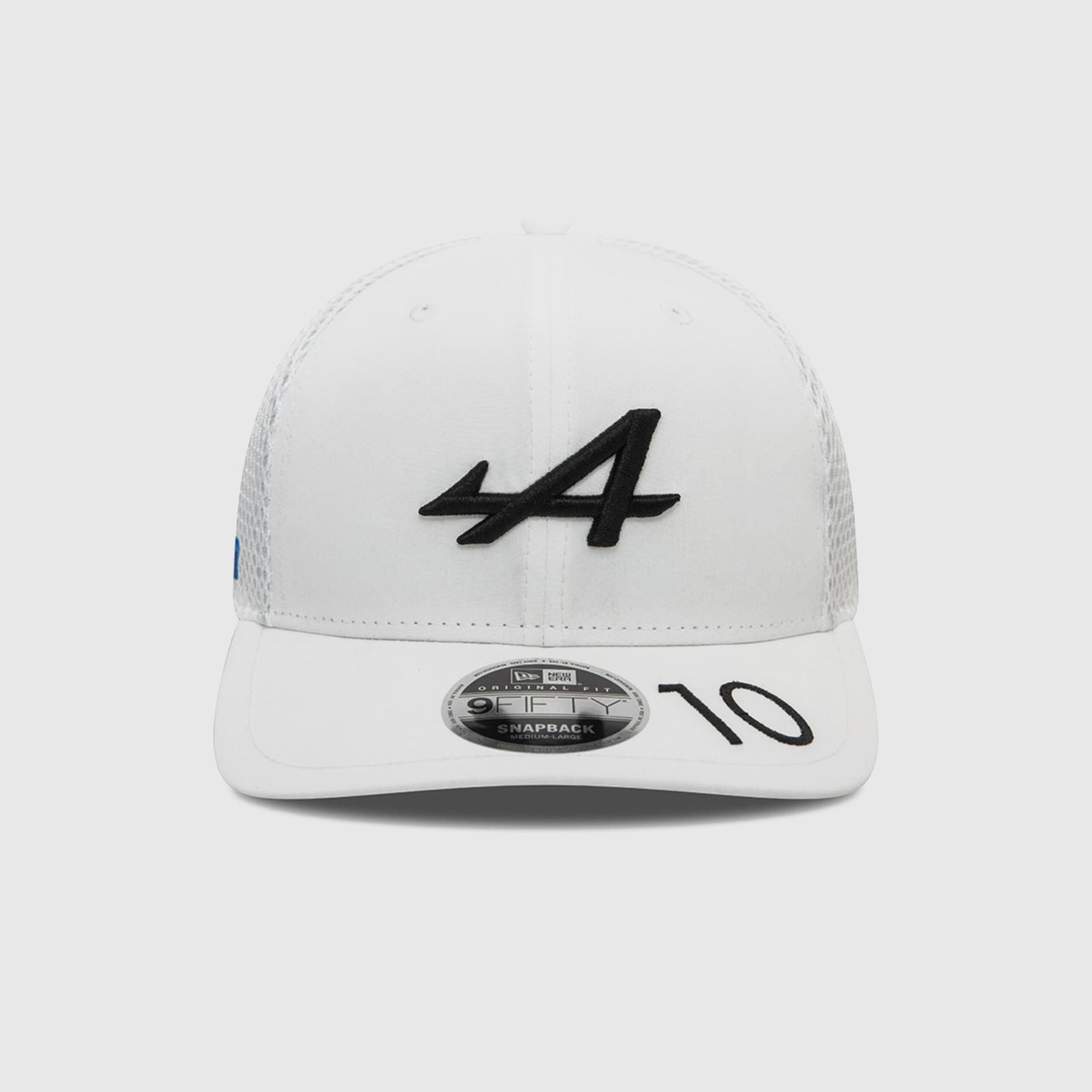 The official 2024 Alpine F1 Team Pierre Gasly New Era 9FIFTY Driver Cap, as worn by Gasly throughout the 2024 Formula 1 season. With a snapback fastening and Trucker style rear fastener, Gasly’s New Era cap features his driver number 10 on the crown and a team pink and blue print design on the underside of the brim.
