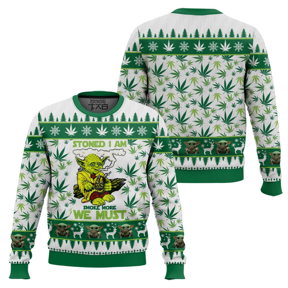 420 Yoda “Stoned I am Smoke More We Must” Ugly Christmas Sweater
