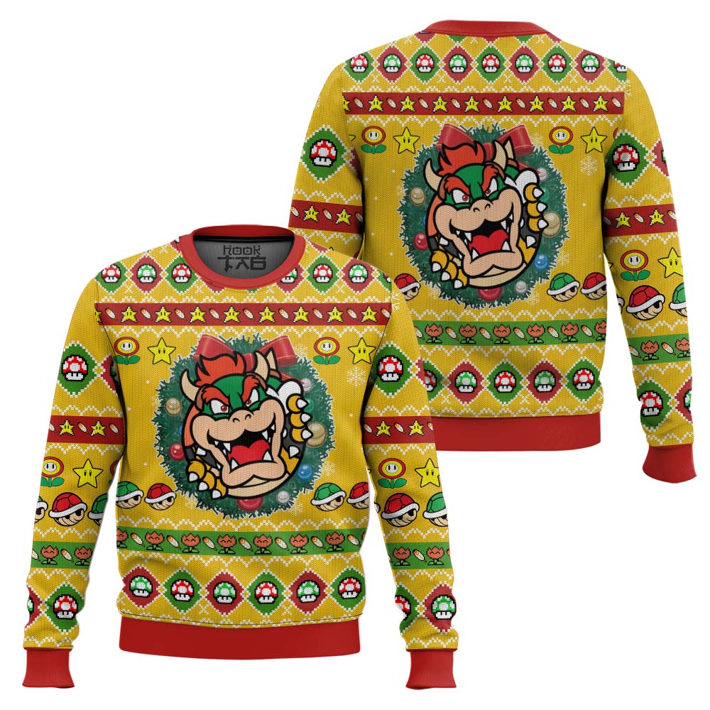 Bowser Wreath Mario Bros Ugly Christmas Sweater