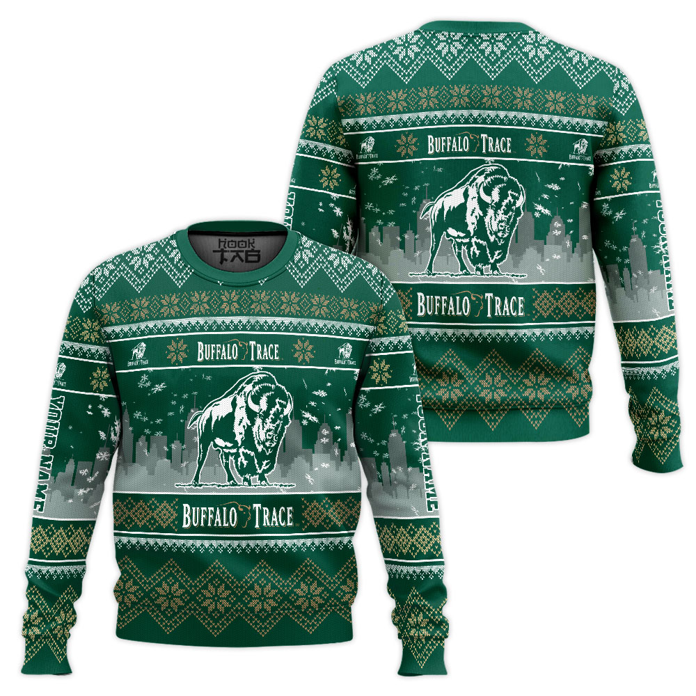 Buffalo Trace Bourbon Whiskey. – Custom Name Ugly Christmas Sweater