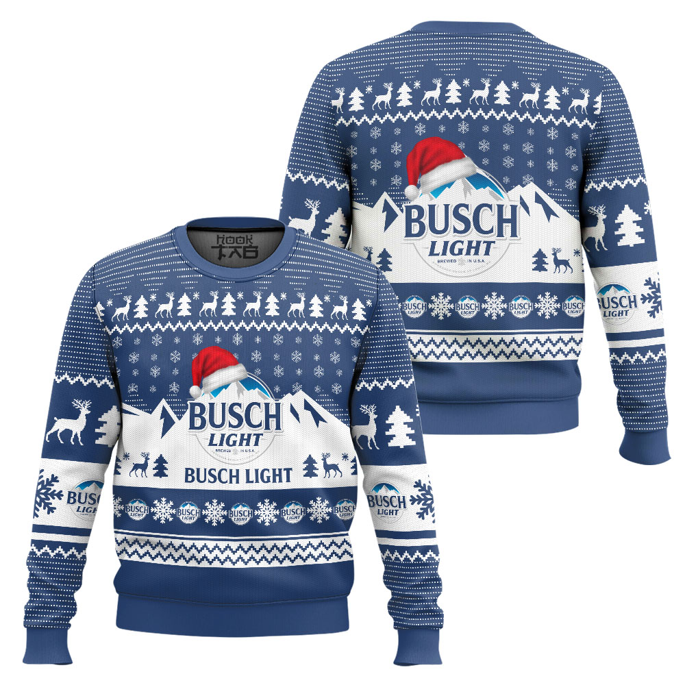 Busch Light Santa Hat Ugly Christmas Sweater