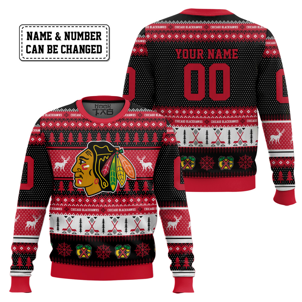 Chicago Blackhawks – Custom Name And Number Ugly Sweater