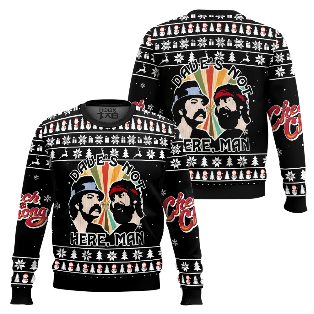Dave’s Not Here Man Cheech and Chong Ugly Christmas Sweater