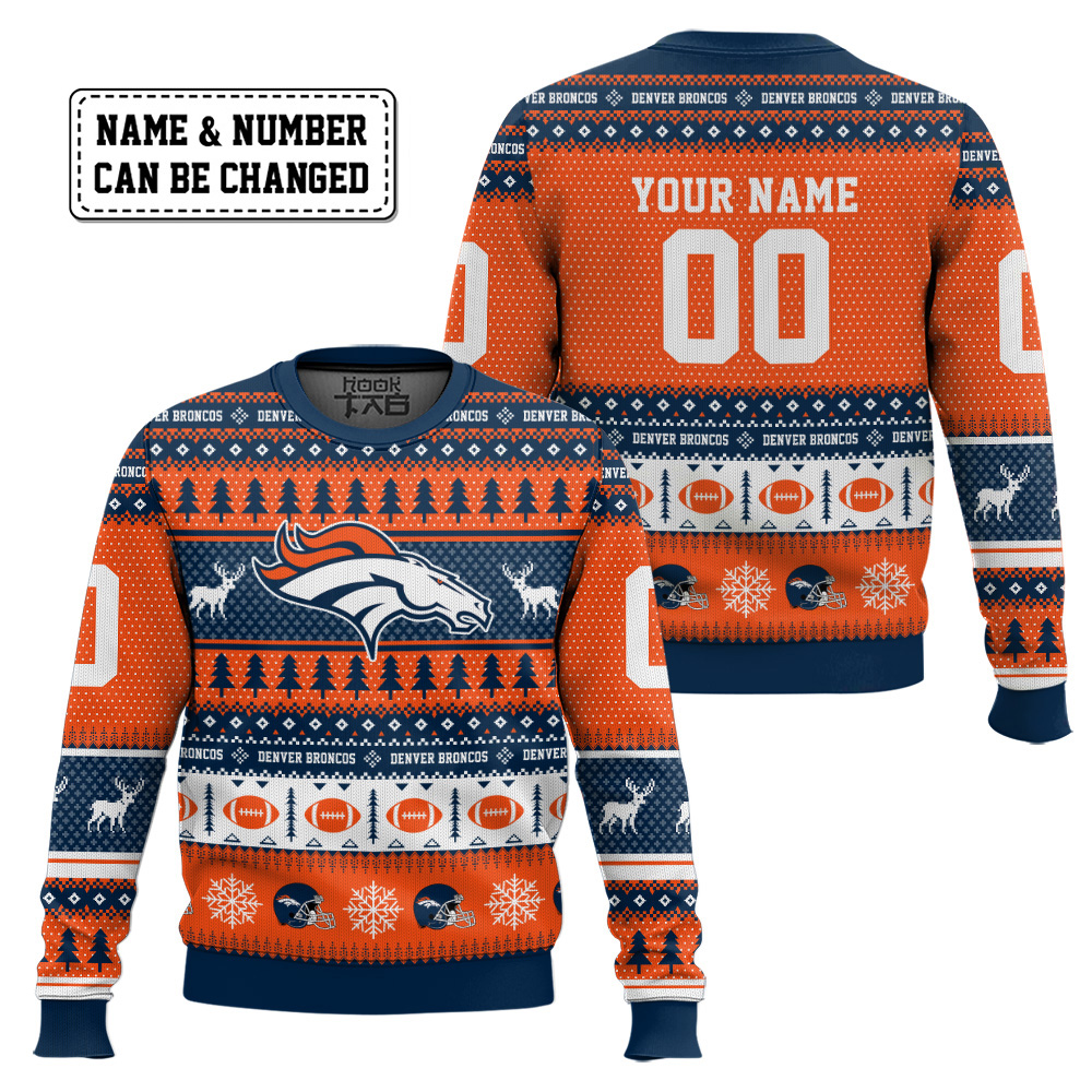 Denver Broncos – Custom Name And Number Ugly Sweater