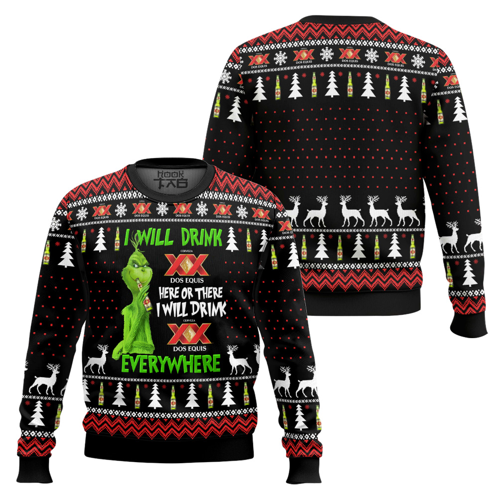 Grinch I Will Drink Dos Equis Everywhere Ugly Christmas Sweater