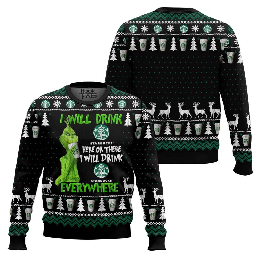 Grinch I Will Drink Starbucks Everywhere Ugly Christmas Sweater