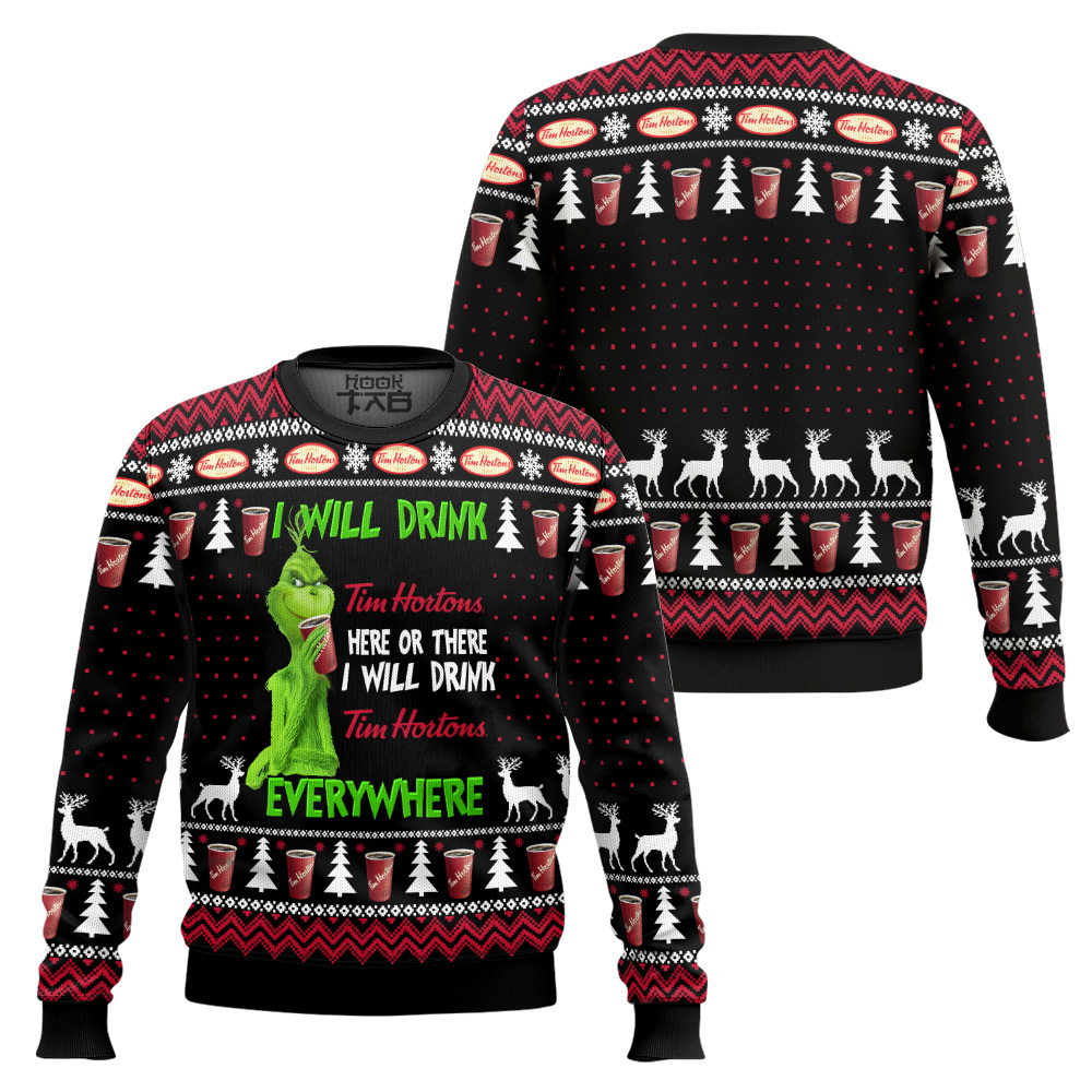 Grinch I Will Drink Tim Hortons Everywhere Ugly Christmas Sweater