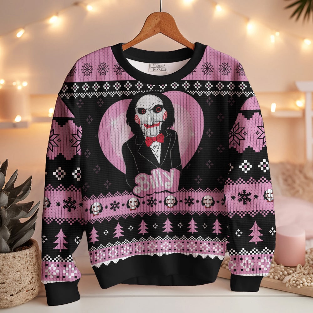 Jigsaw Billy The Puppet Horror Ugly Christmas Sweater