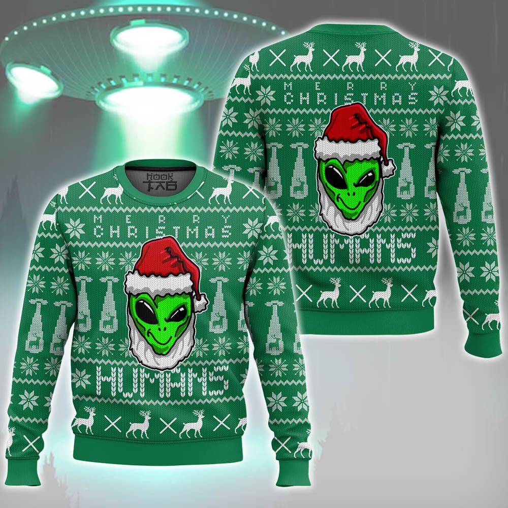 Merry Christmas Human Alien Ugly Christmas Sweater