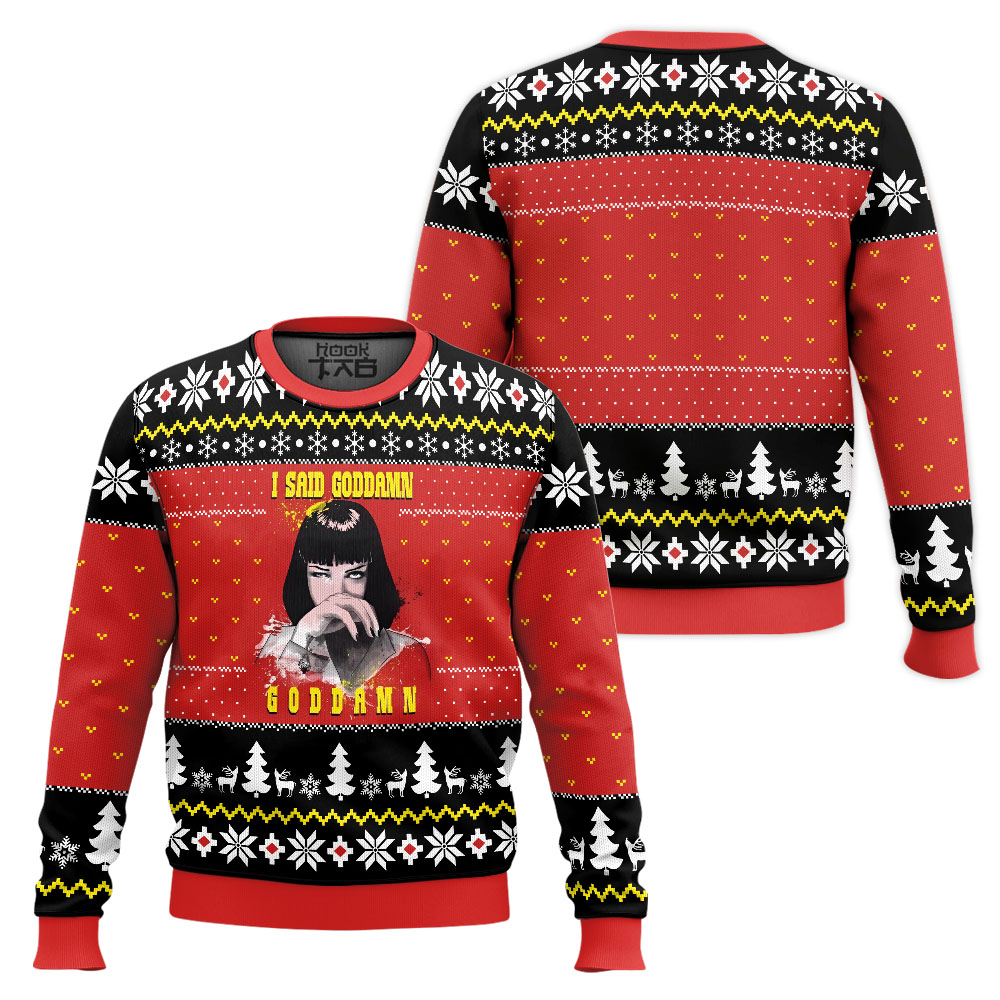Mia Wallace Goddamn Pulp Fiction Ugly Christmas Sweater