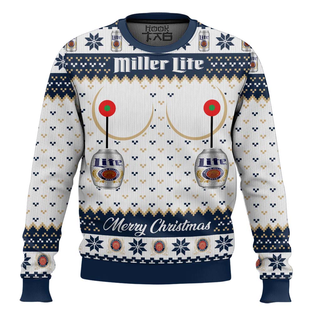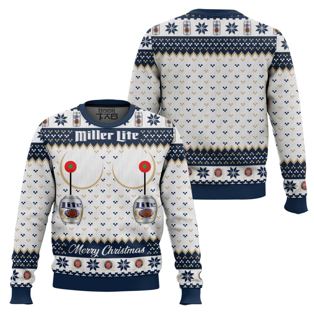 Miller Lite Titties Funny Ugly Christmas Sweater