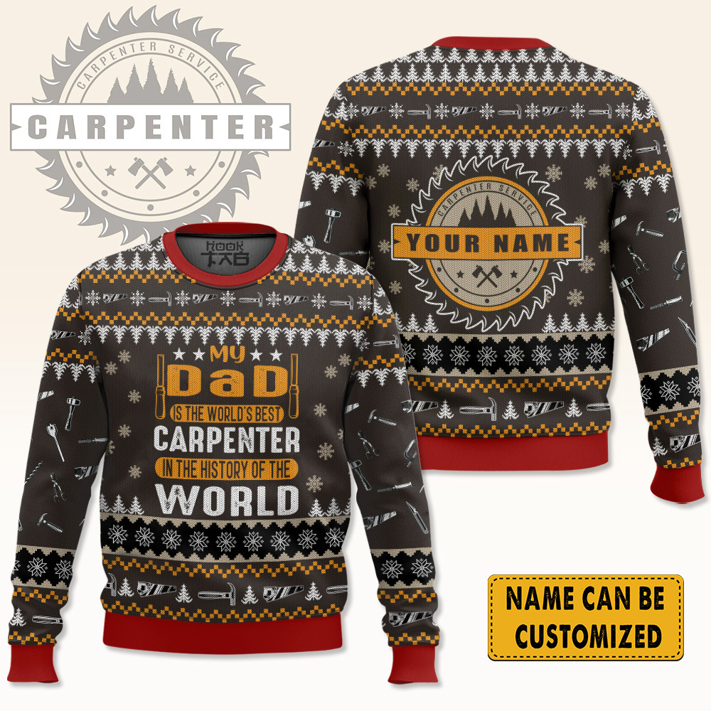 My Dad Is The Best Carpenter – Custom Name Ugly Christmas Sweater