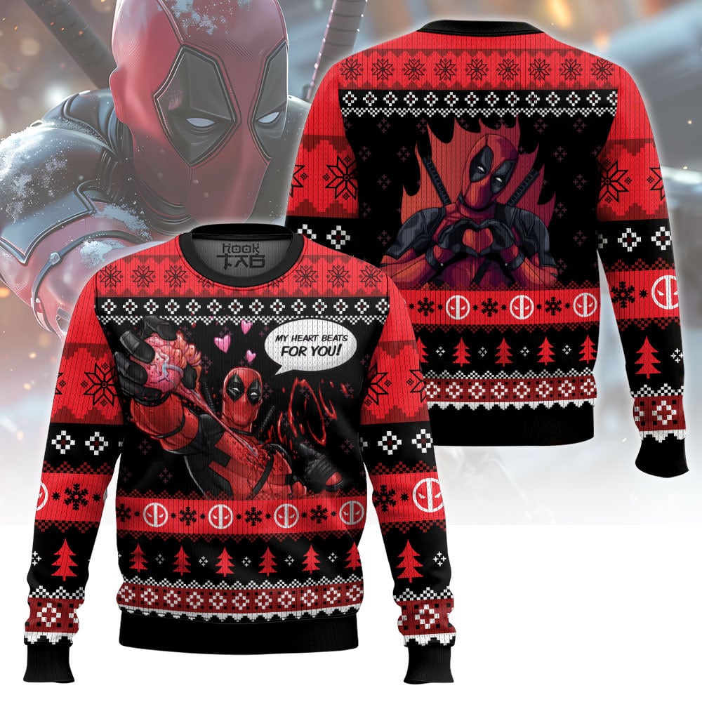 MY HEART BEATS FOR YOU! Deadpool Ugly Sweater