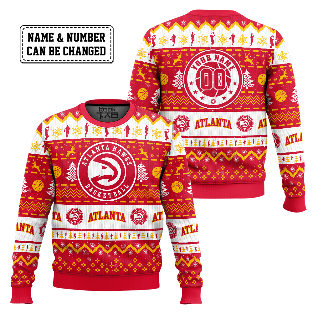 NBA Atlanta Hawks Custom Name And Number Ugly Christmas Sweater