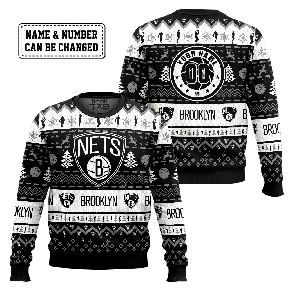 NBA Brooklyn Nets Custom Name And Number Ugly Christmas Sweater