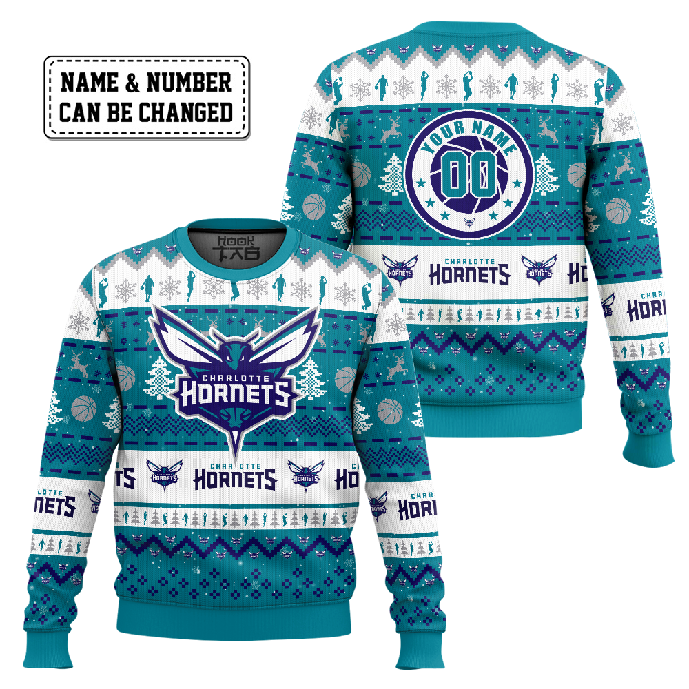 NBA Charlotte Hornets Custom Name And Number Ugly Christmas Sweater