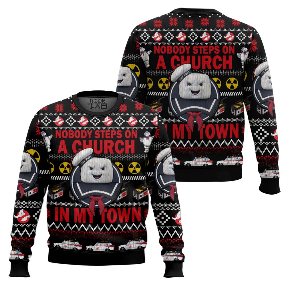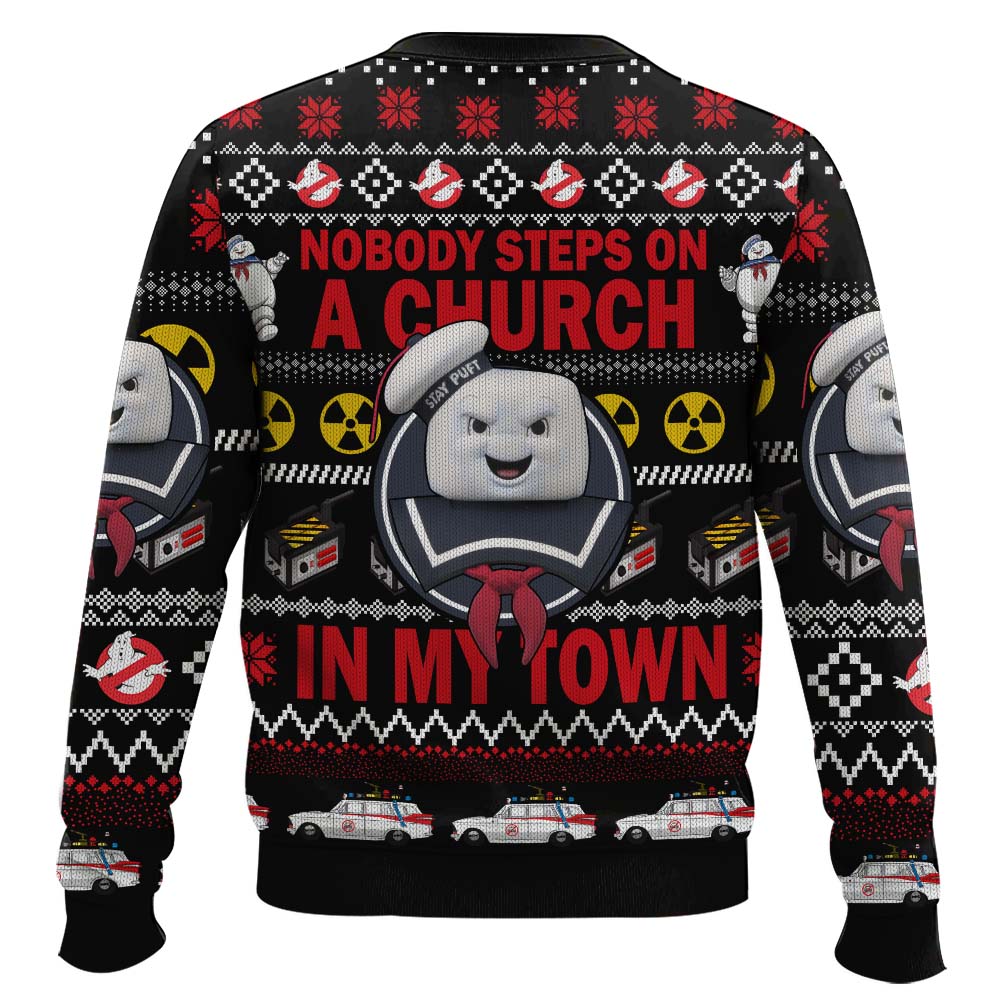 Nobody Steps On A Church In My Town Ghostbusters Ugly Christmas Sweater