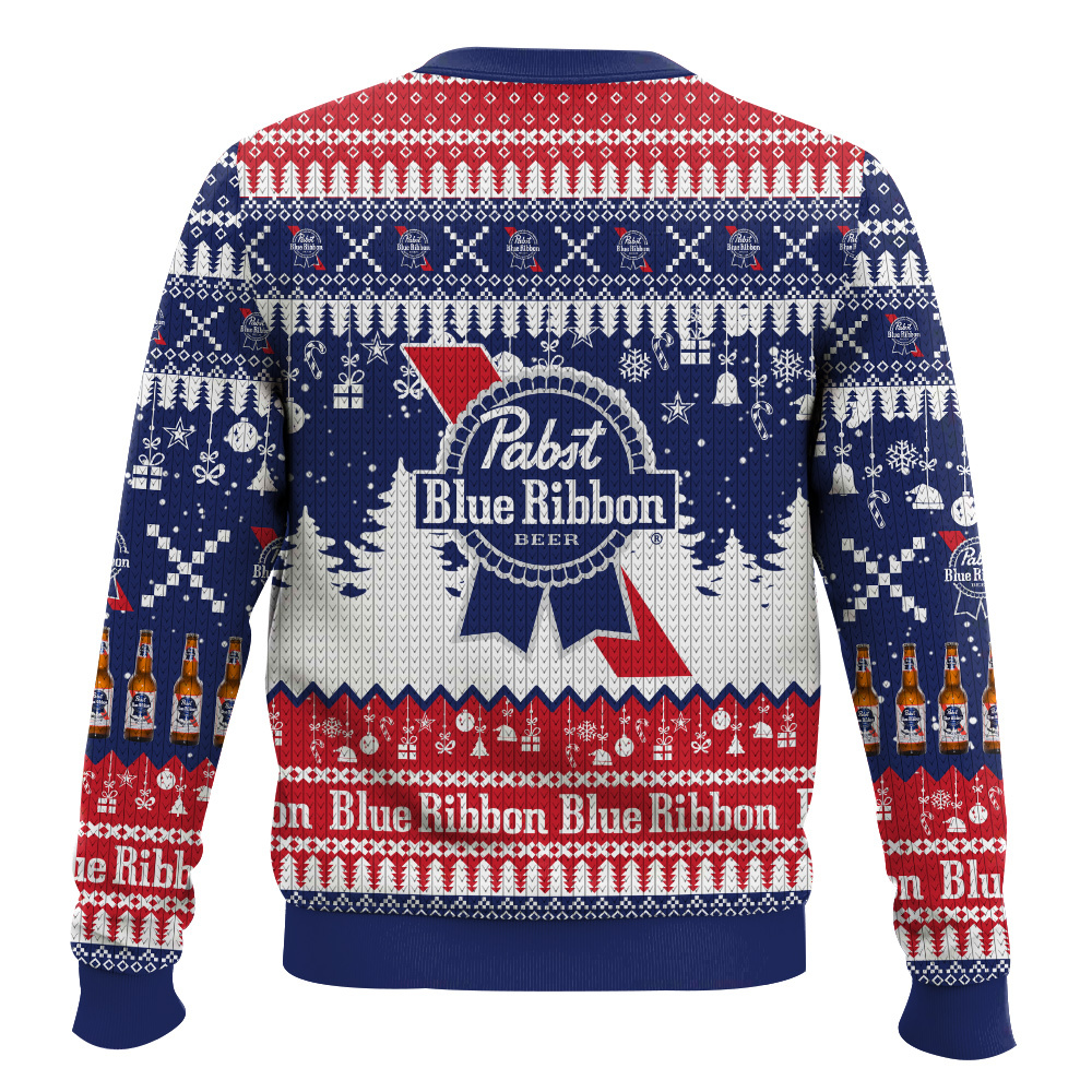Pabst Blue Ribbon Amercian Beer Ugly Christmas Sweater