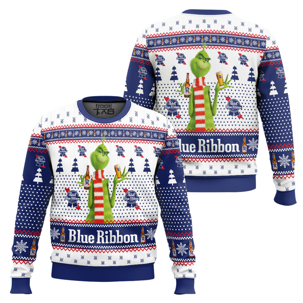 Pabst Blue Ribbon Grinch Ugly Christmas Sweater