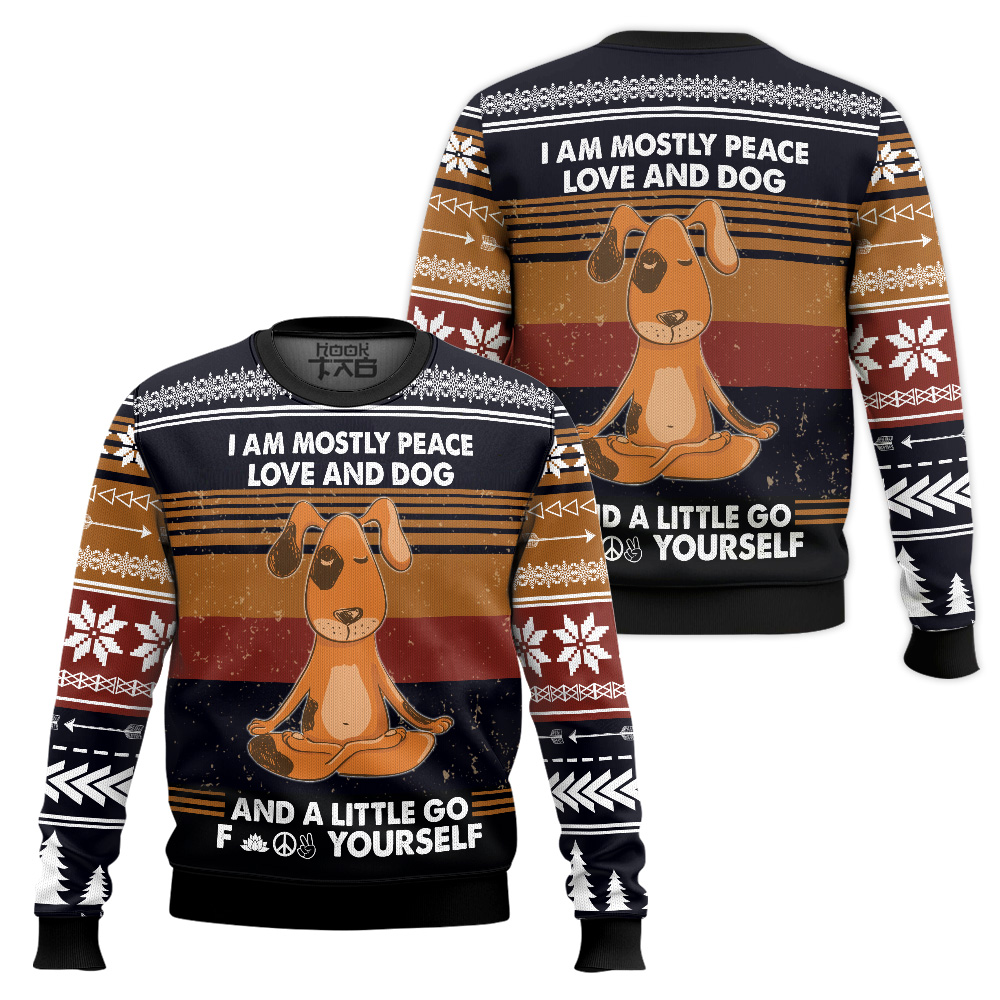 Peace Love And Dog Vintage Ugly Christmas Sweater Christmas Gift Sweater