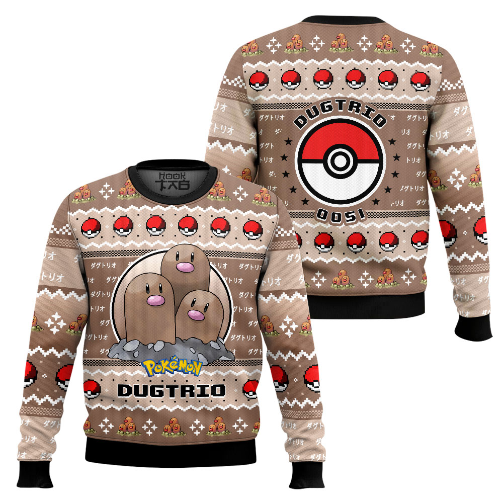 Pokemon Gen 1 Dugtrio Ugly Christmas Sweater