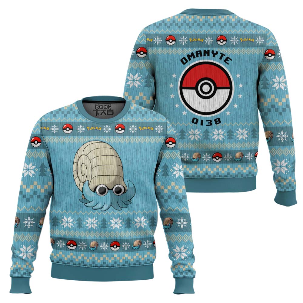 Pokemon Gen 1 Omanyte Ugly Christmas Sweater