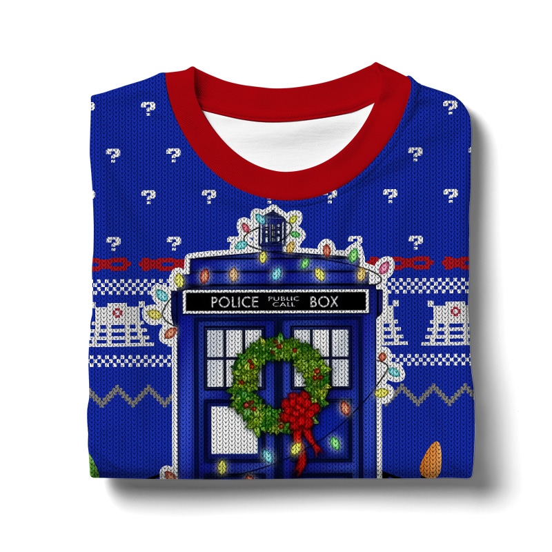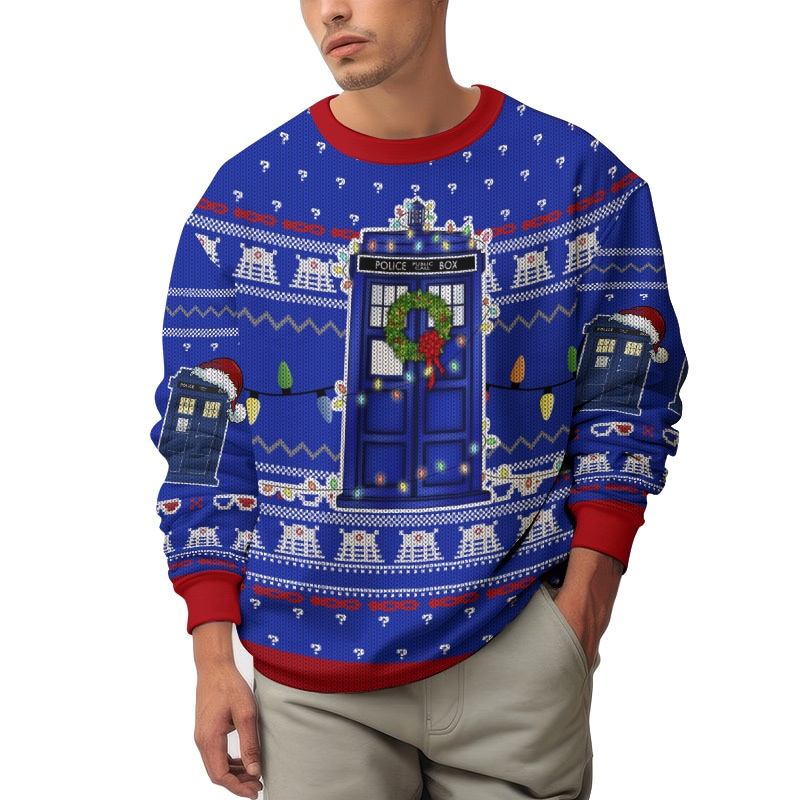 Police Box Tardis Doctor Who Ugly Christmas Sweater