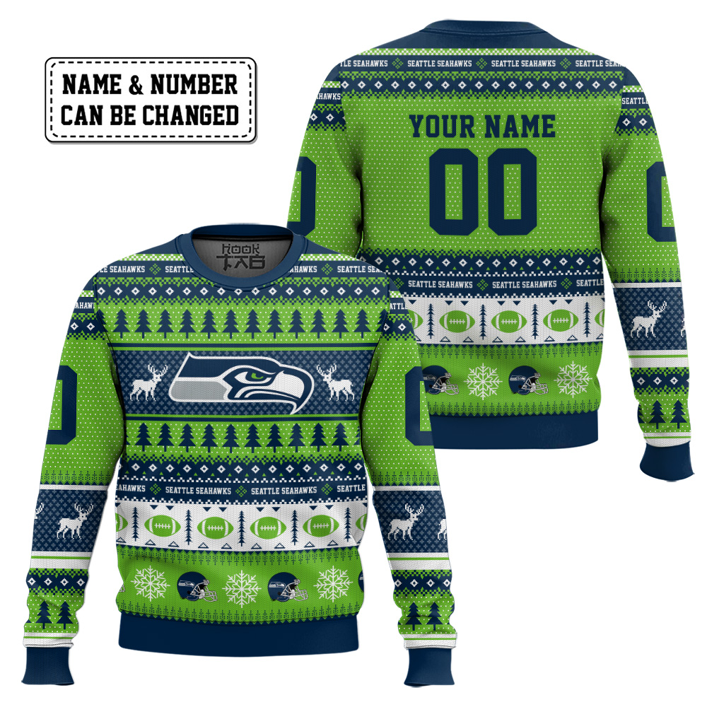 Seattle Seahawks – Custom Name And Number Ugly Sweater