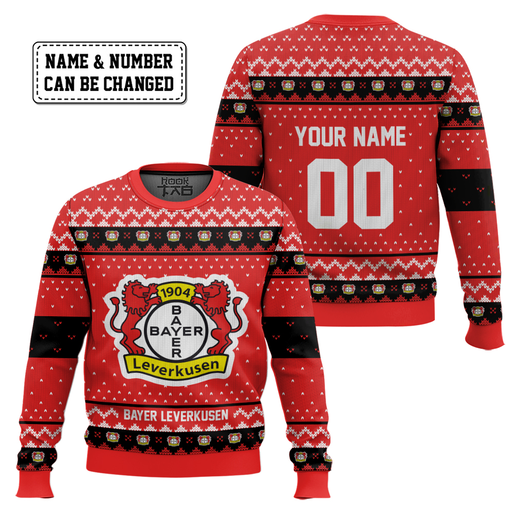 Soccer Bayer Leverkusen Custom Name And Number Ugly Christmas Sweater