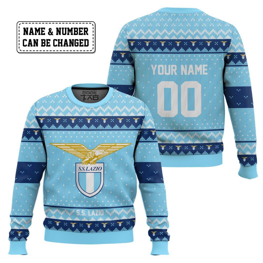 Soccer S.S. Lazio Custom Name And Number Ugly Christmas Sweater