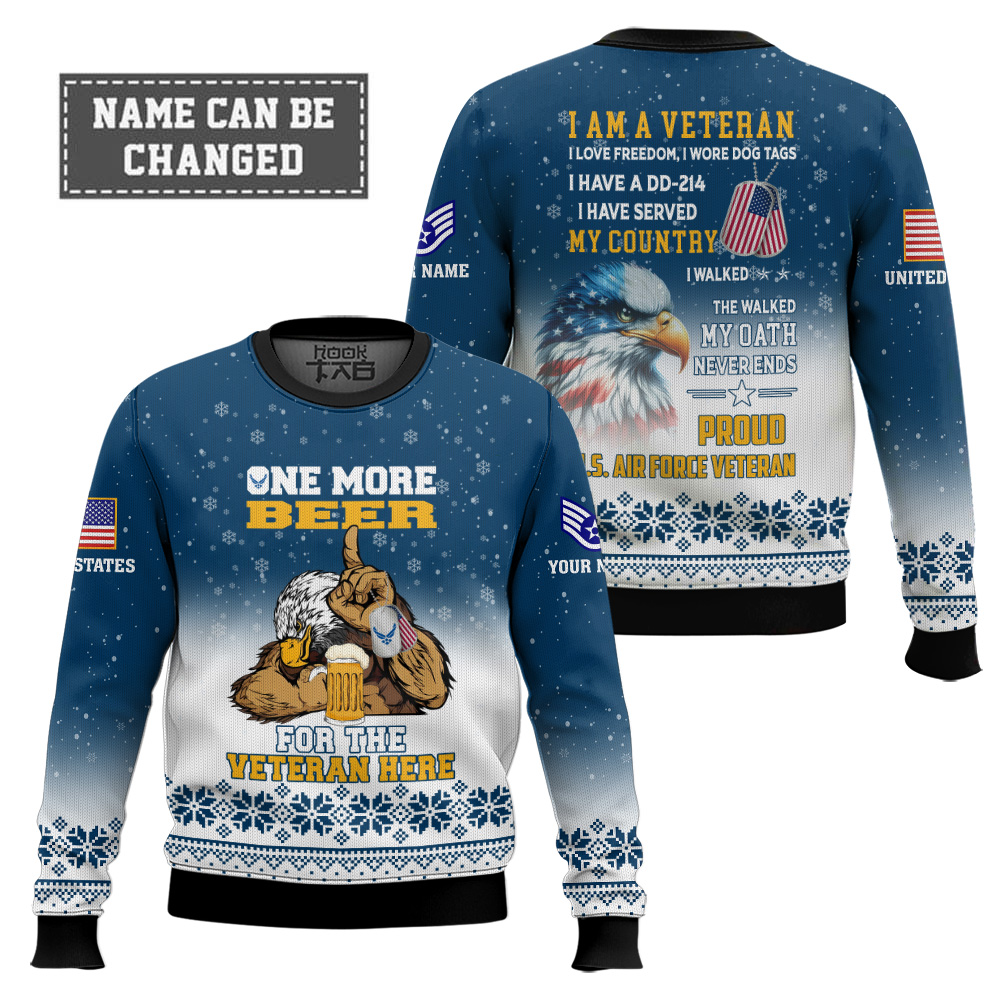 US Air Force One More Beer For The Veteran Here – Custom Name And Rank Ugly Sweater