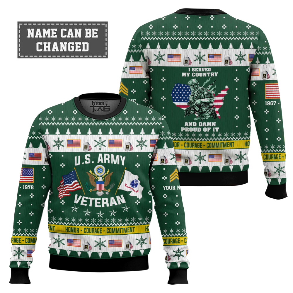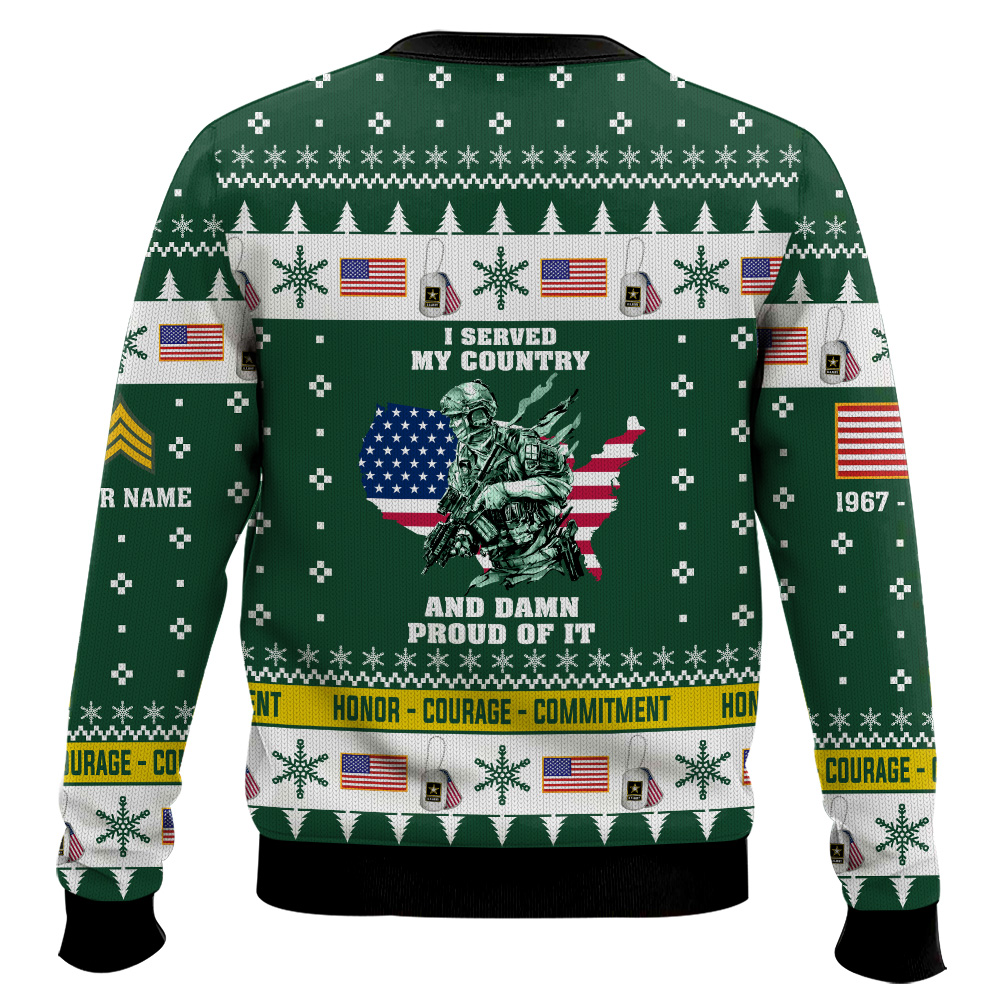 US Army I Served My Country And Damn Proud Of It – Custom Name, Rank And Years Of Service Ugly Sweater
