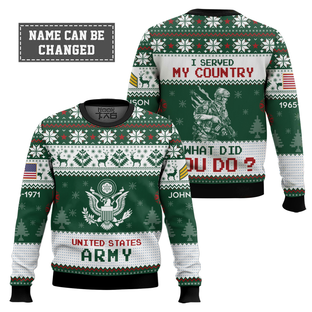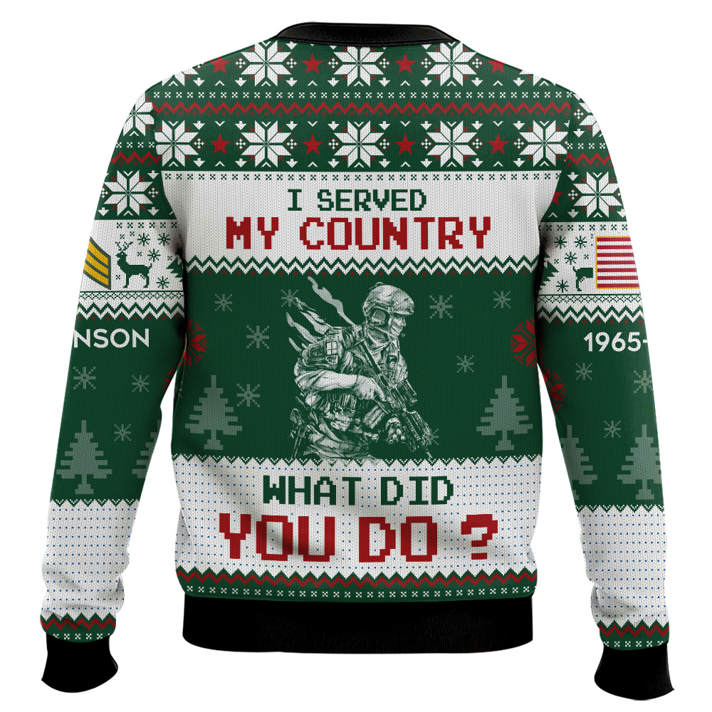 US Army “I Served My Country What Did You Do†– Custom Name, Rank And Years Of Service Ugly Sweater