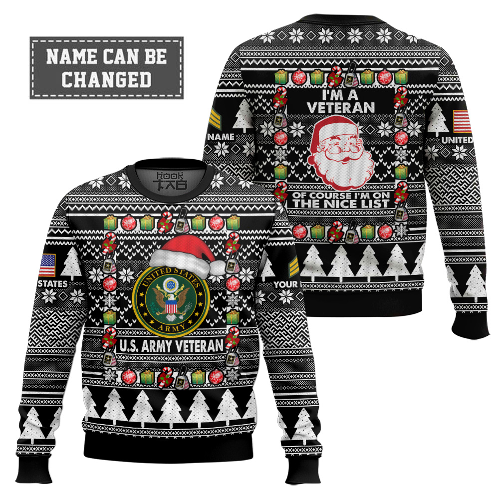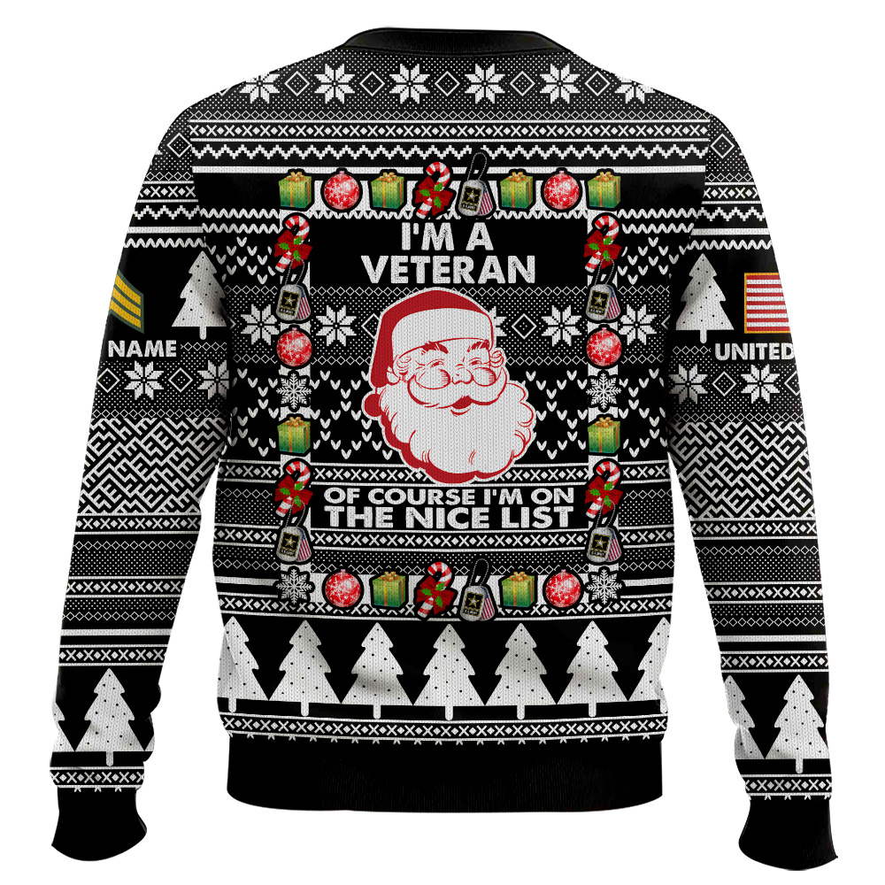 US Army I’m A Veteran, Of Course I’m On The Nice List – Custom Name And Rank Ugly Sweater