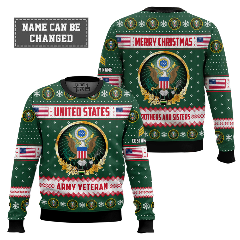 US Army Merry Christmas Brothers And Sisters – Custom Name And Rank Ugly Sweater