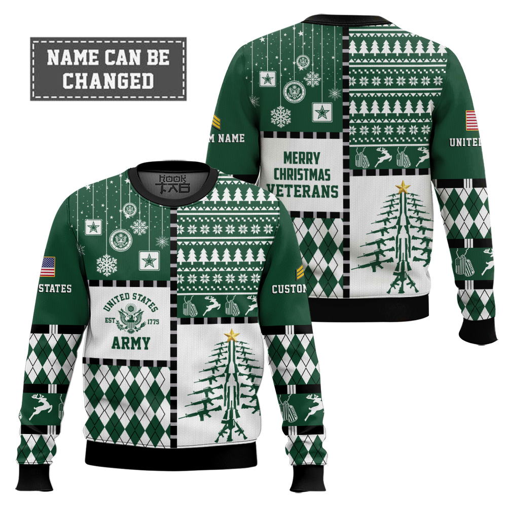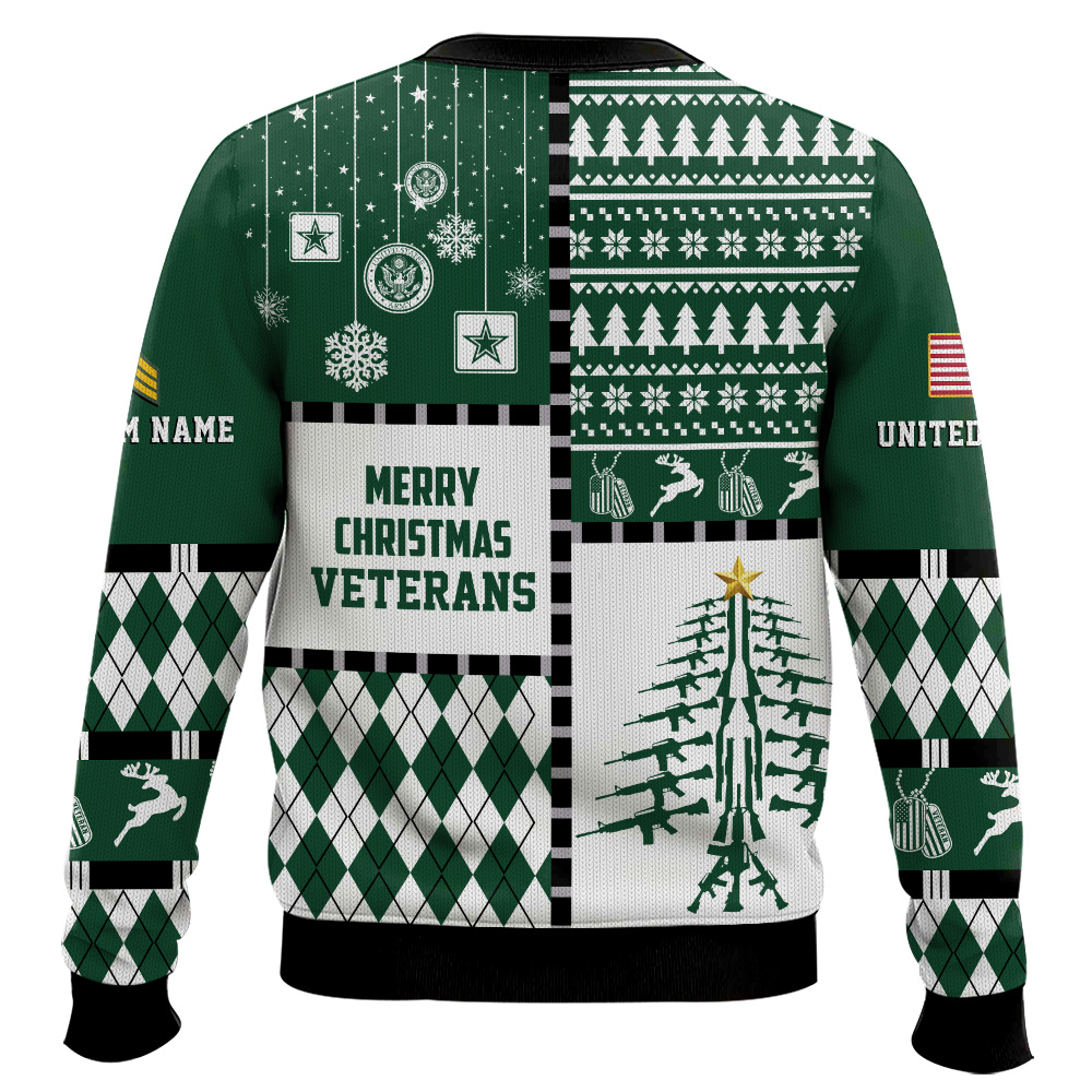 US Army Merry Christmas Veteran – Custom Name And Rank Ugly Sweater