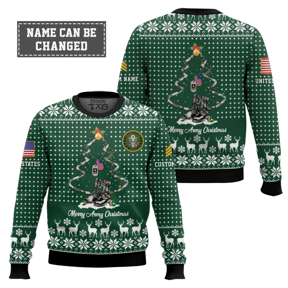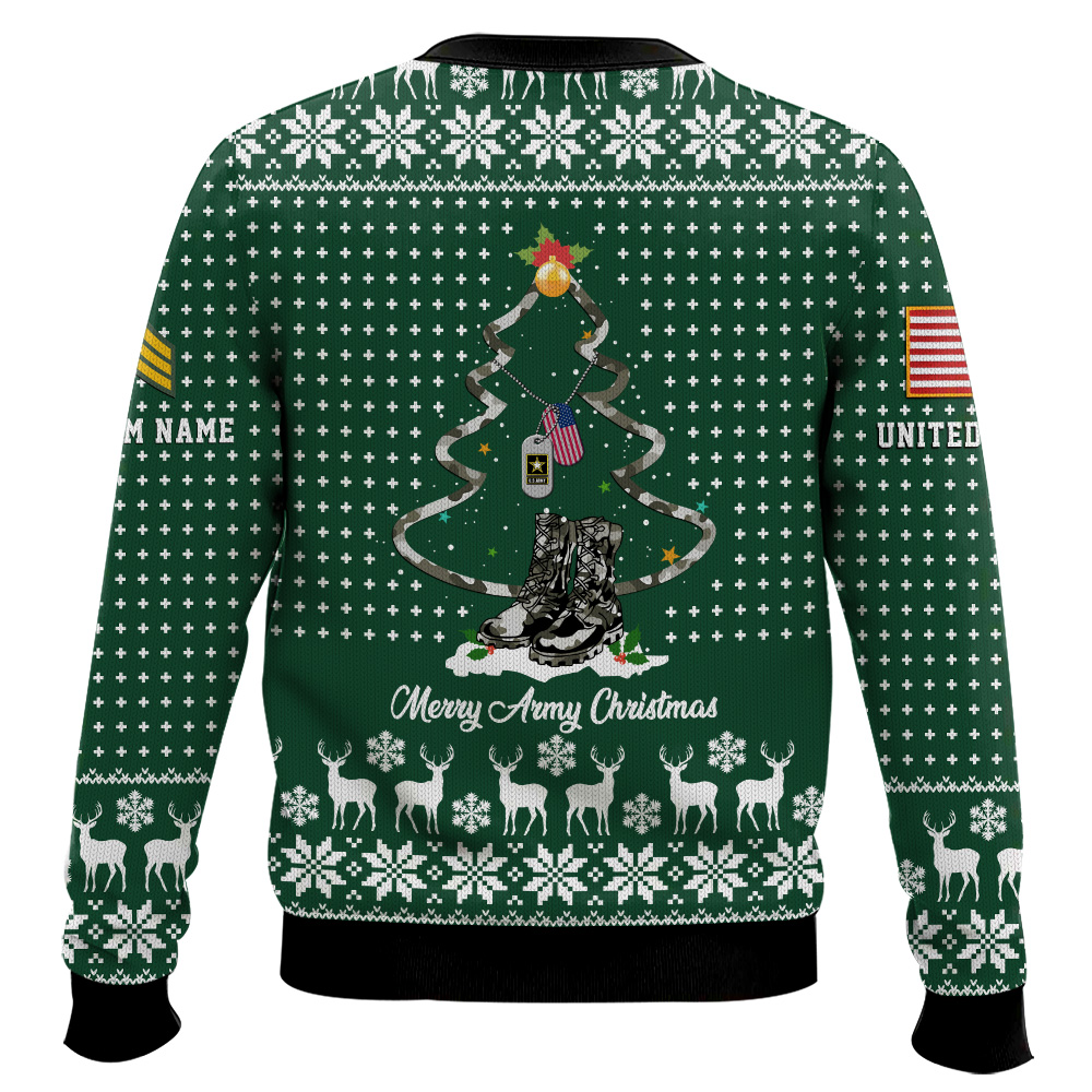 US Army Merry Christmas – Custom Name And Rank Ugly Sweater