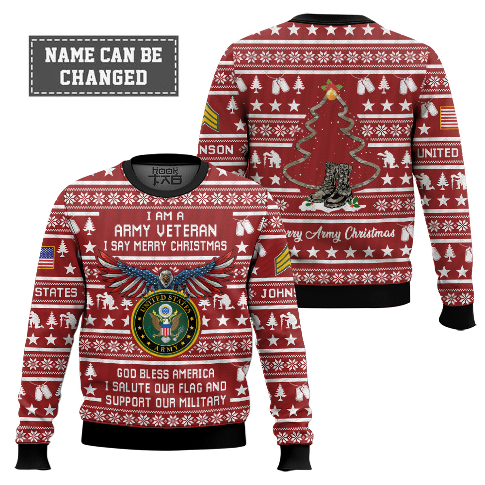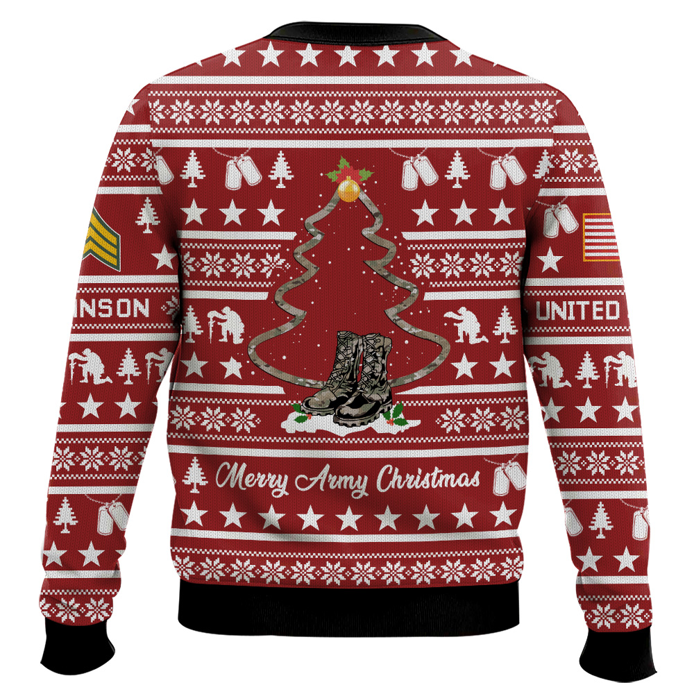 US Army Veteran Merry Christmas – Custom Name And Rank Ugly Sweater