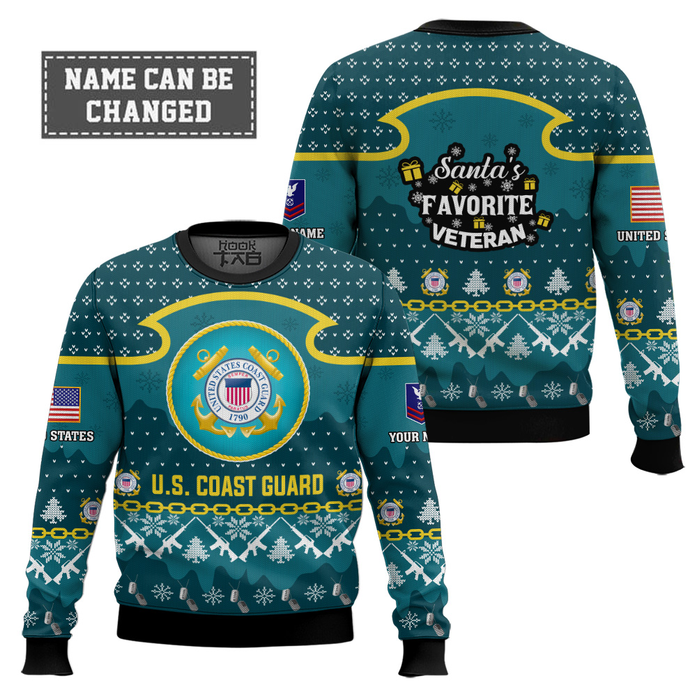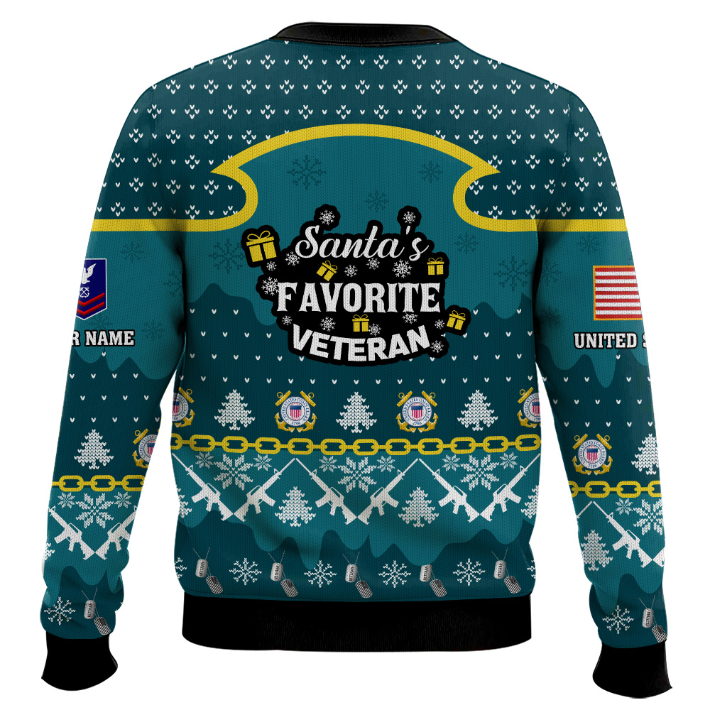 US Coast Guard Santa’s Favorite Veteran – Custom Name And Rank Ugly Sweater