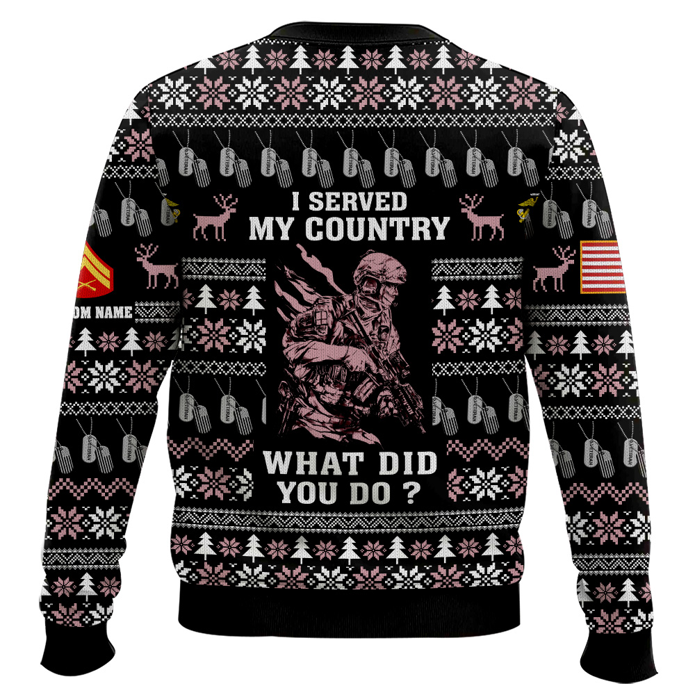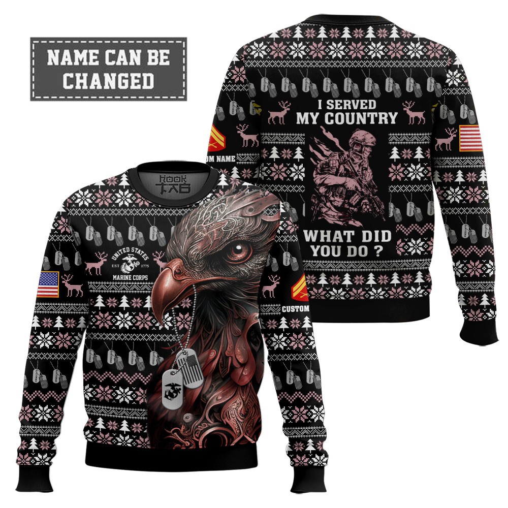US Marine Corps Liberty Eagle I Served My Country – Custom Name And Rank Ugly Sweater
