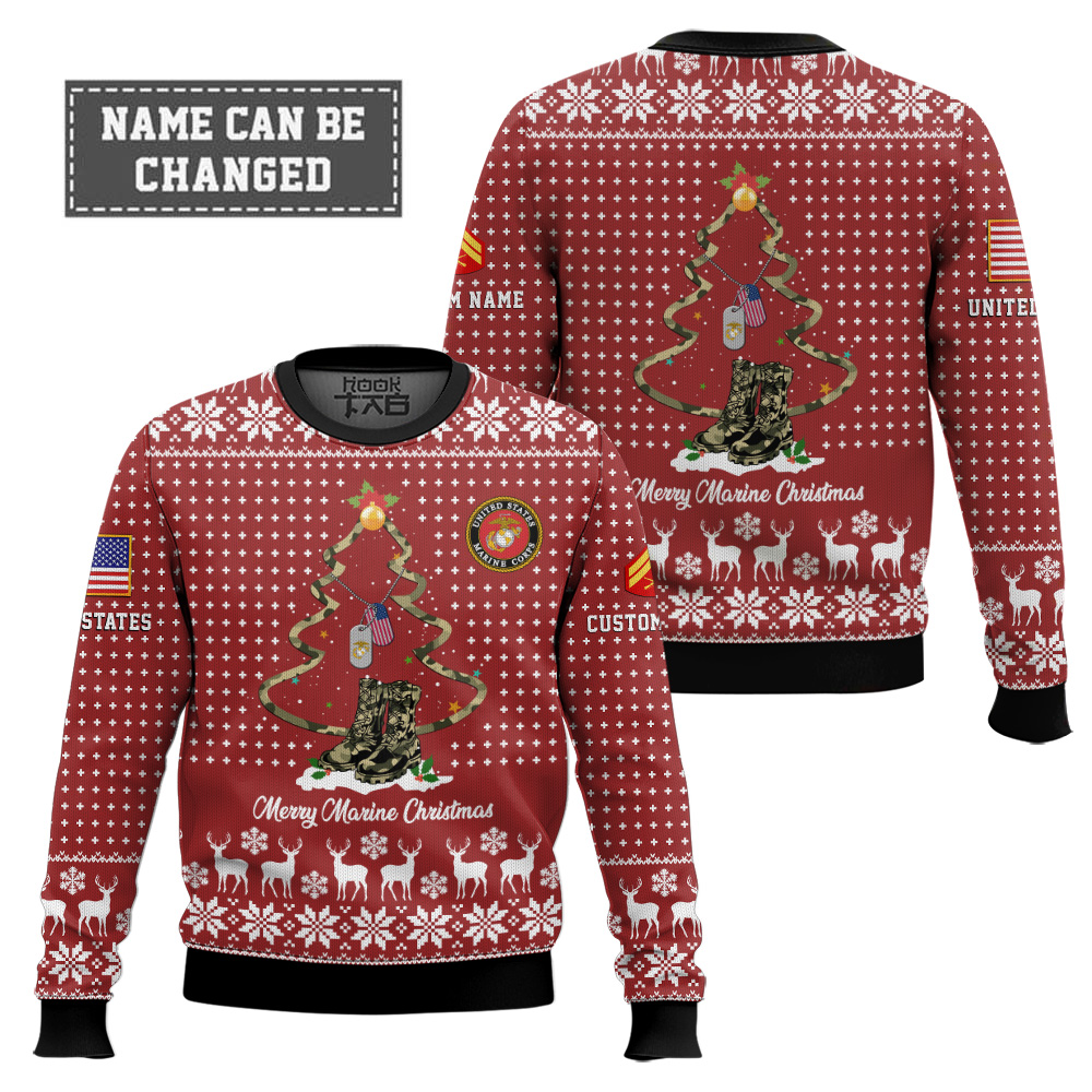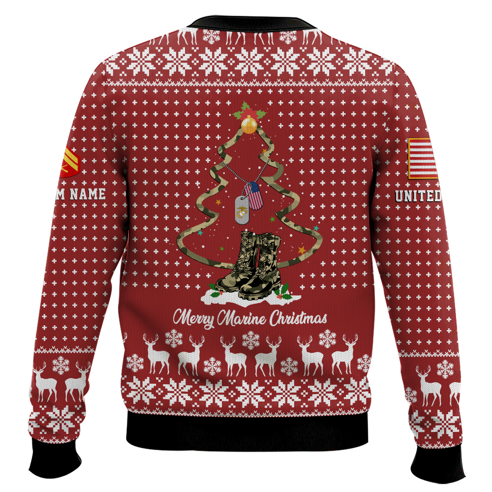 US Marine Corps Merry Christmas – Custom Name And Rank Ugly Sweater