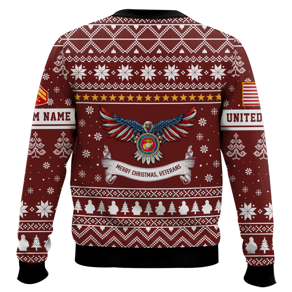 US Marine Corps Proud Veteran – Custom Name And Rank Ugly Sweater