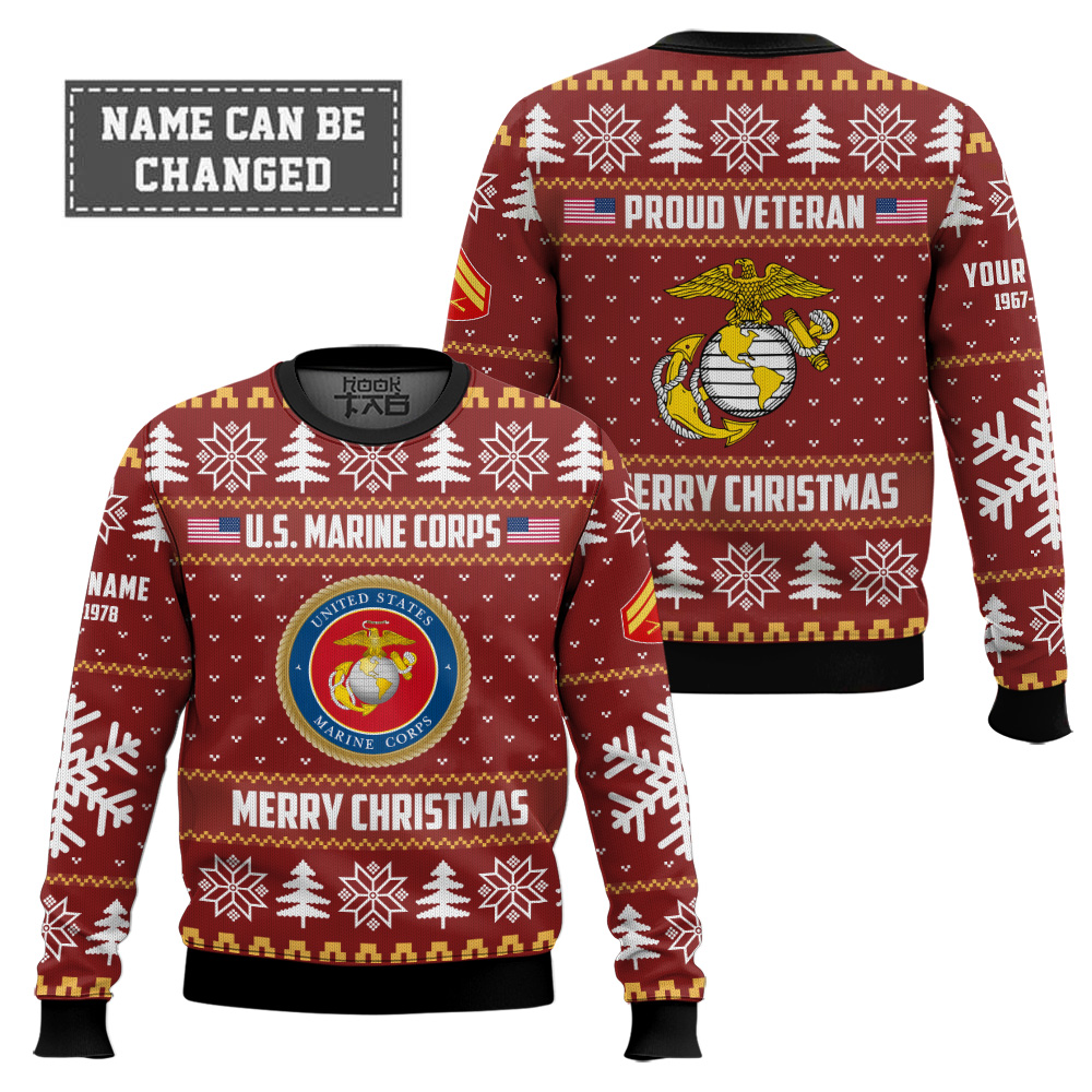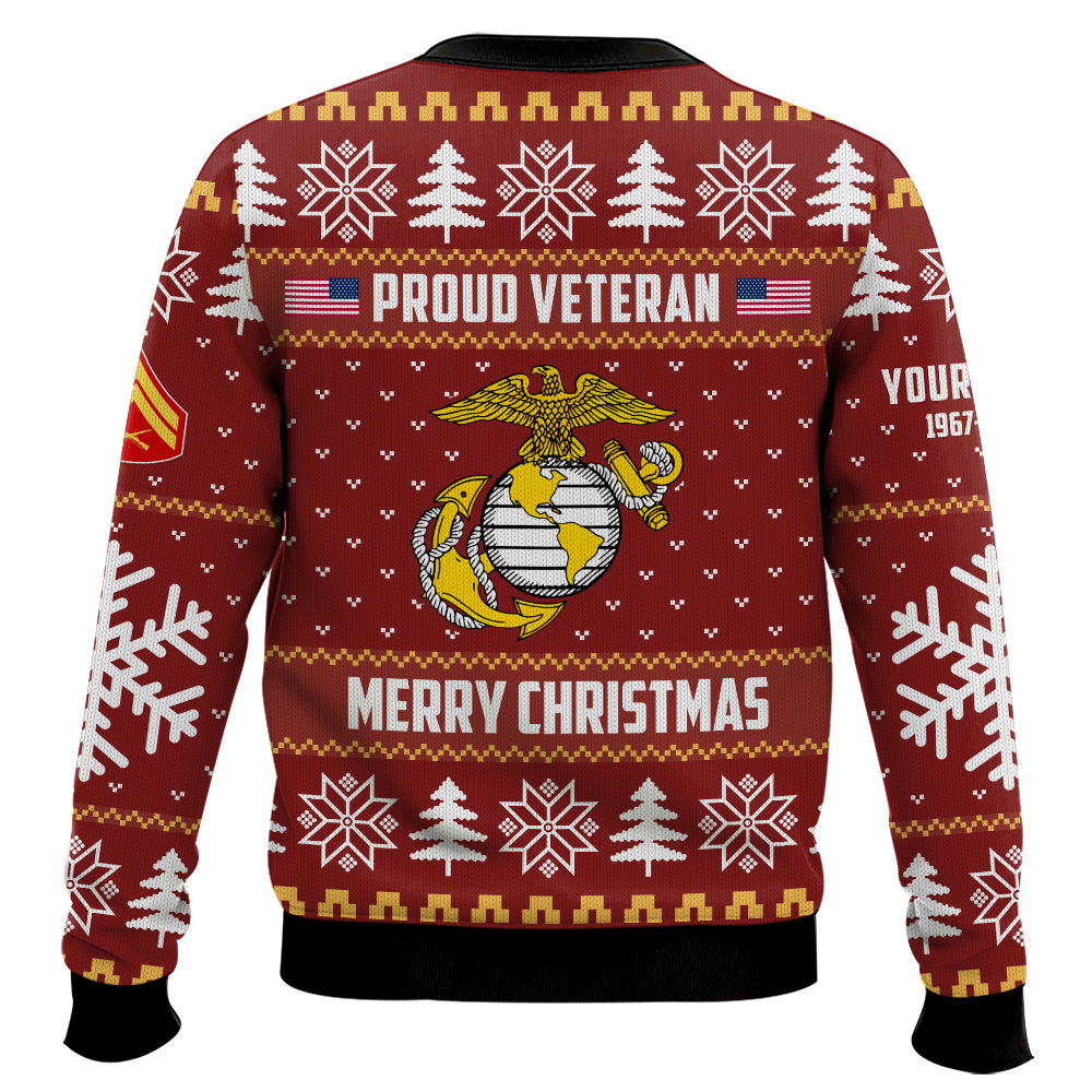 US Marine Corps Proud Veteran – Custom Name, Rank And Years Of Service Ugly Sweater