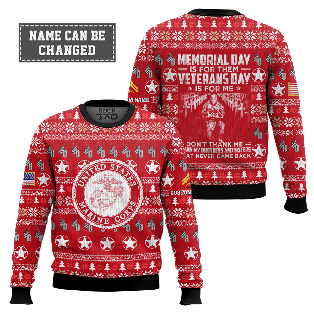 US Marine Corps Thank My Brothers And Sisters That Never Came Back – Custom Name And Rank Ugly Sweater