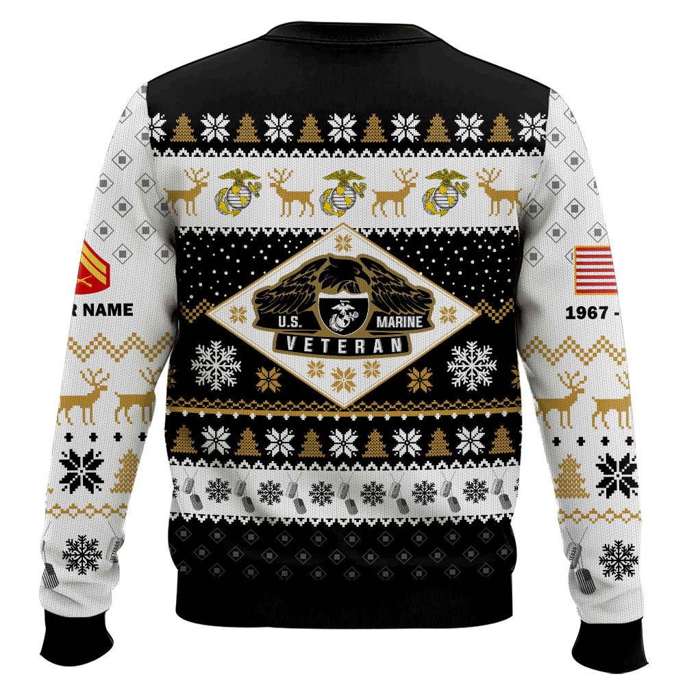 US Marine Corps Veterans – Custom Name, Rank And Years Of Service Ugly Sweater