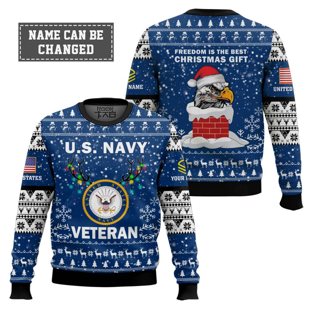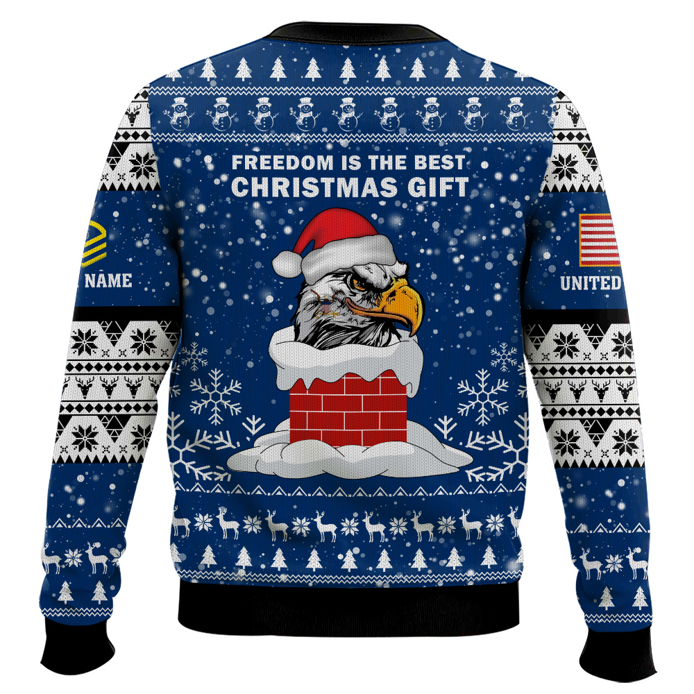 US Navy Freedom Is The Best Gift – Custom Name And Rank Ugly Sweater