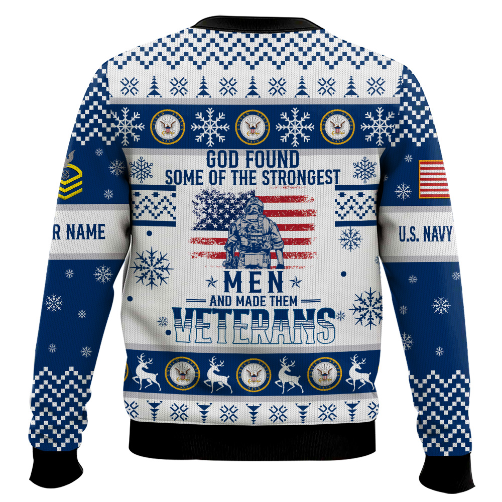 US Navy God Found The Strongest Men And Made Them Veteran – Custom Name And Rank Ugly Sweater