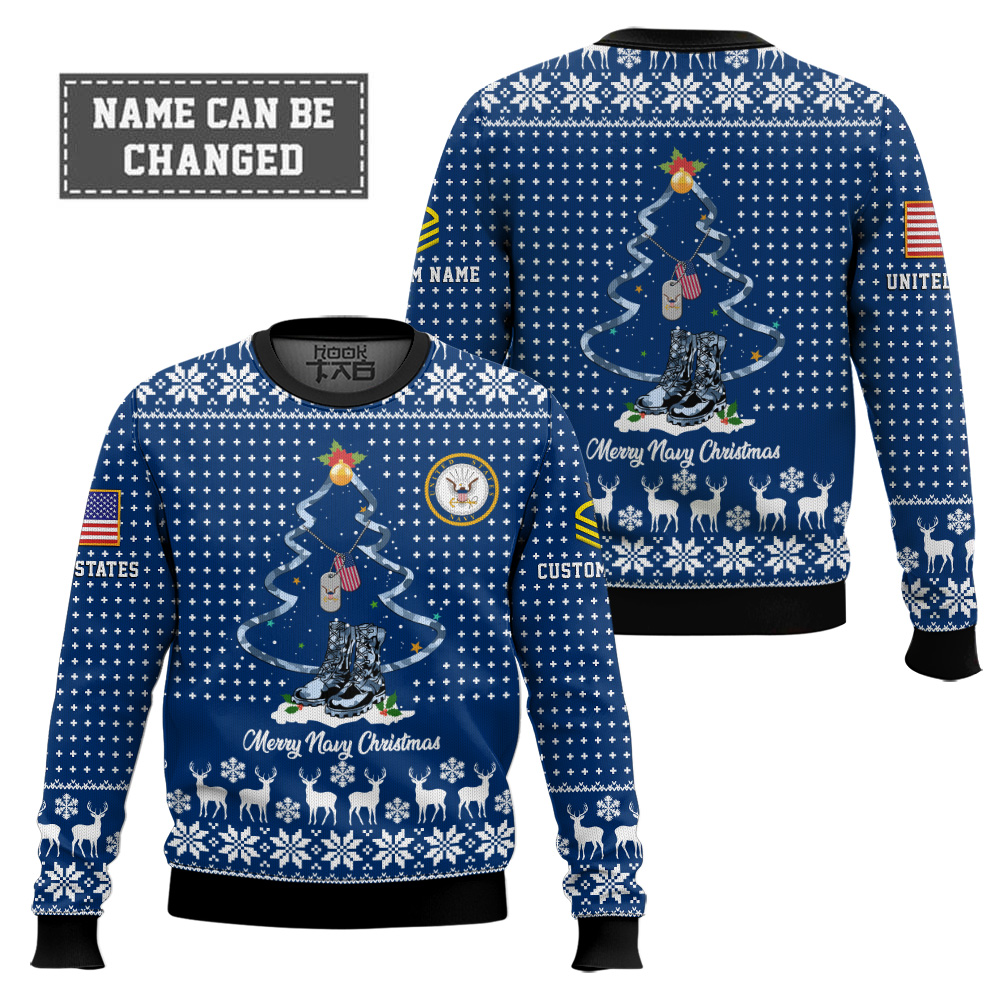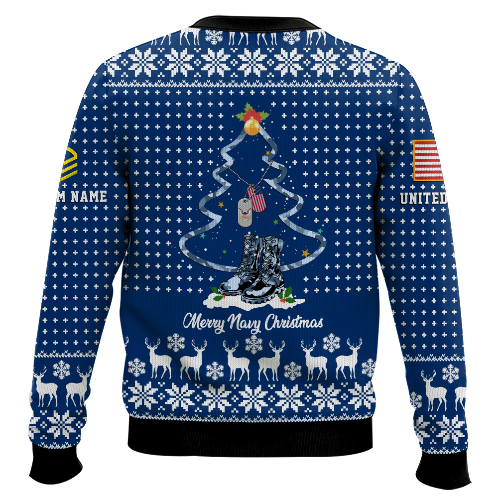 US Navy Merry Christmas – Custom Name And Rank Ugly Sweater