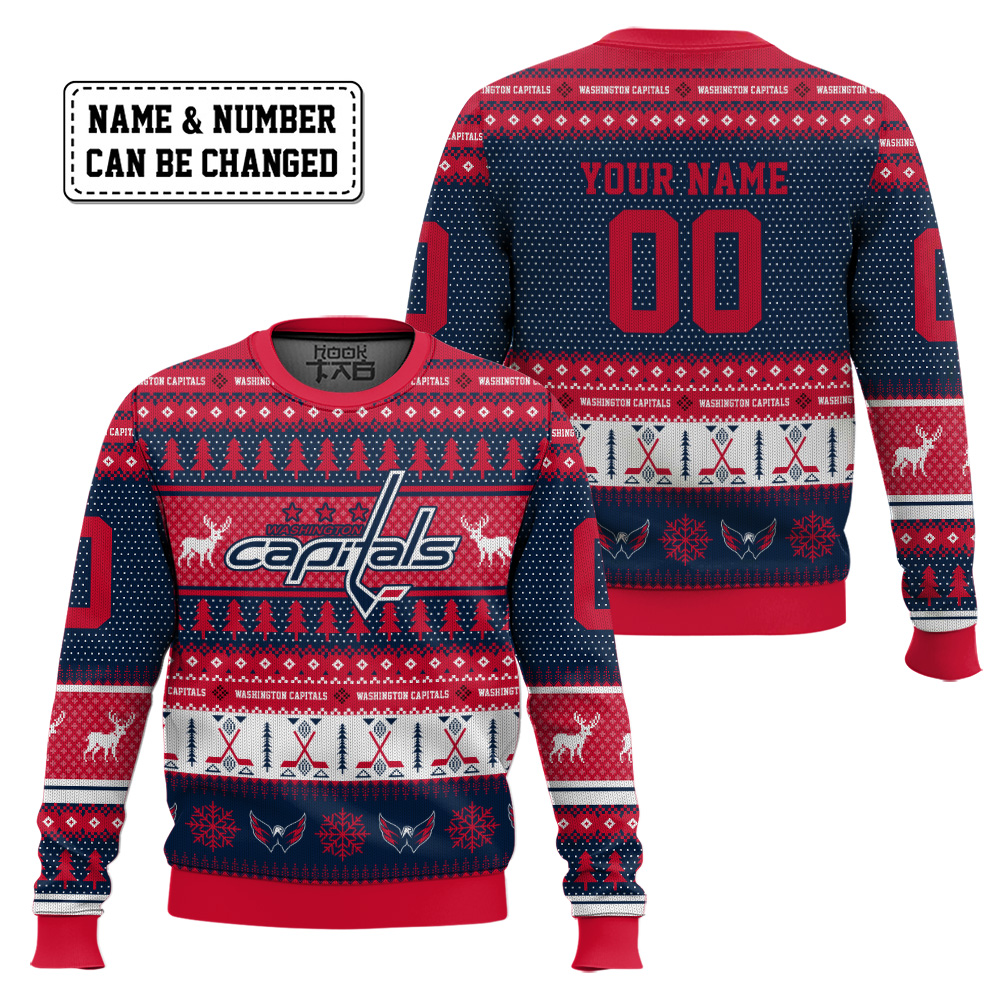Washington Capitals – Custom Name And Number Ugly Sweater
