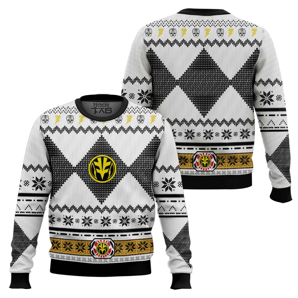 White Power Rangers Mighty Morphin Ugly Christmas Sweater